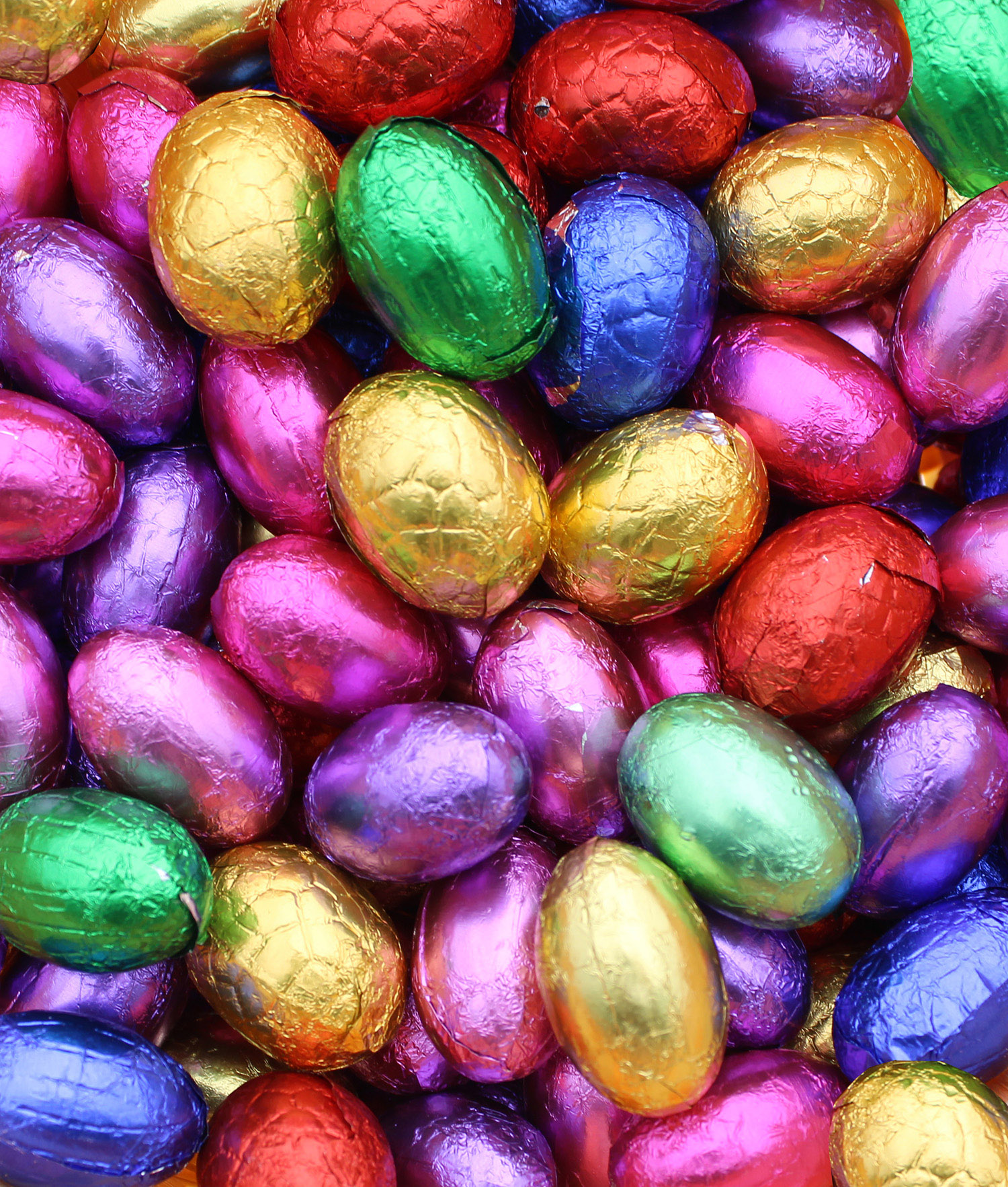 Mix van ongeveer 70 gram verschillende paaseitjes. Melk, wit, puur en gevuld. Voeg de eitjes toe aan een samengesteld pakket of in een leuke koker.