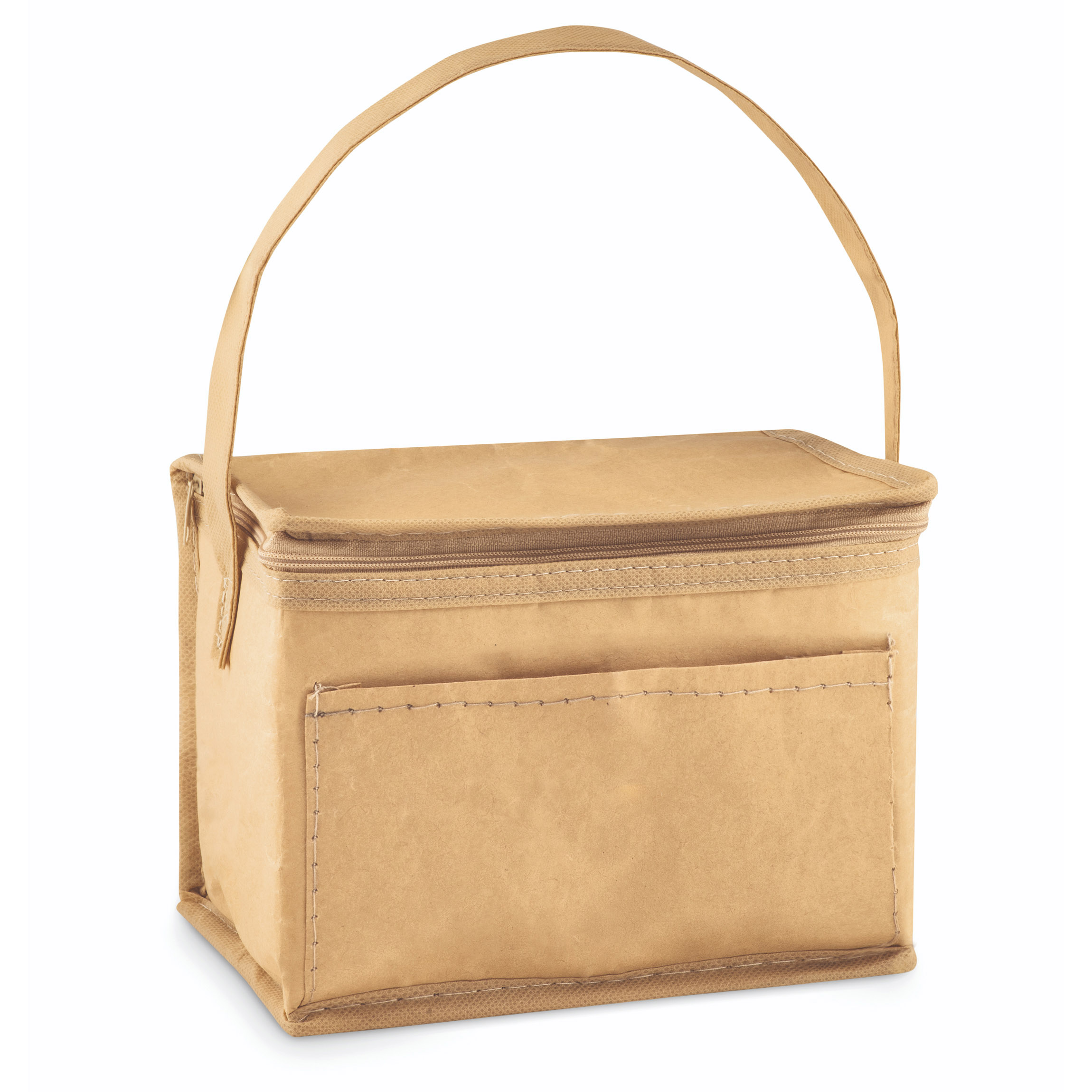 Gerecycled papieren woven koel-/ lunchtas voor 6 blikjes. Met voorvak en draaghengsel. Capaciteit 3L.